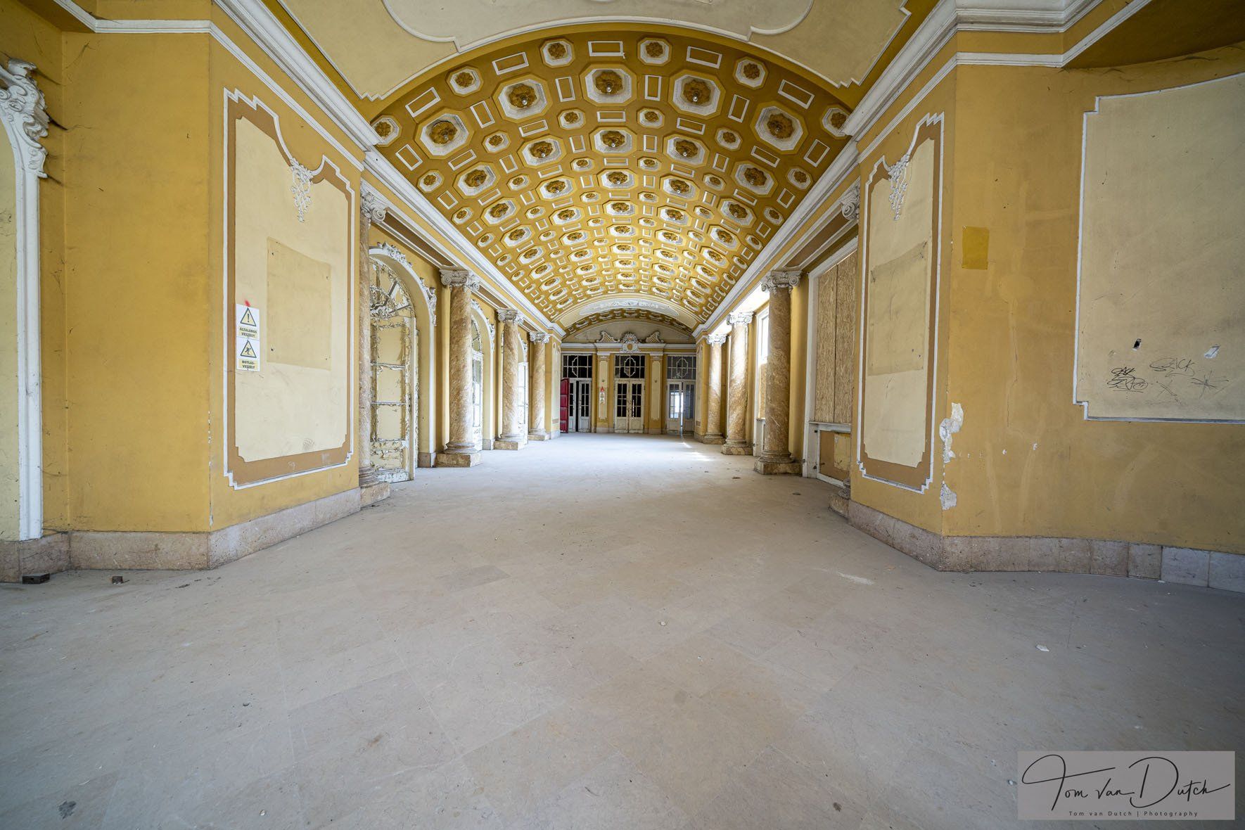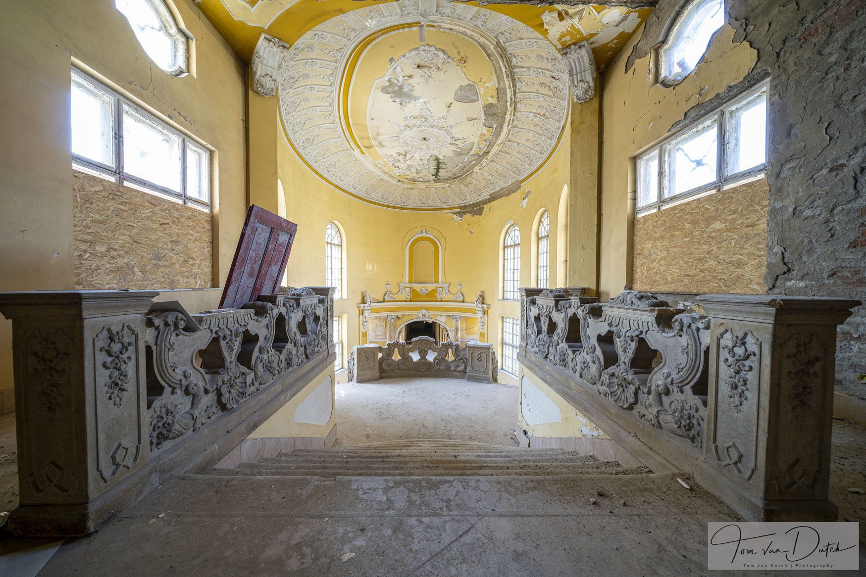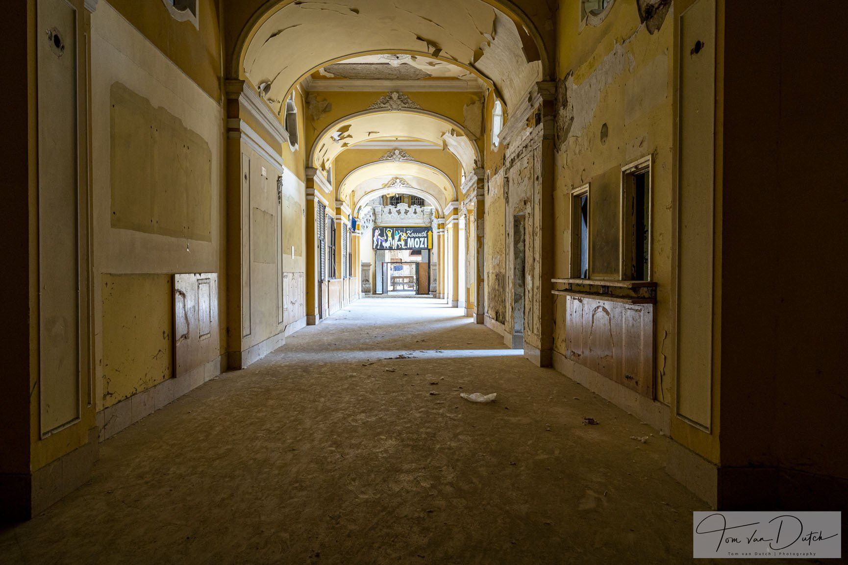 Insolvenzverwalter beschlagnahmten die Vermögenswerte des inzwischen aufgelösten Unternehmens, einschließlich dieses Gebäudes. Die Insolvenzverwalter stellten das Gebäude kostendeckend zum Verkauf. Die Gemeinde kaufte das Gebäude zurück und plant, das Gebäude wieder zu nutzen.
