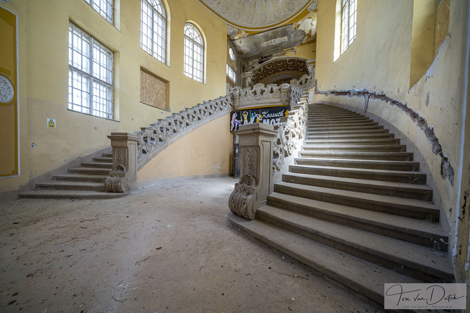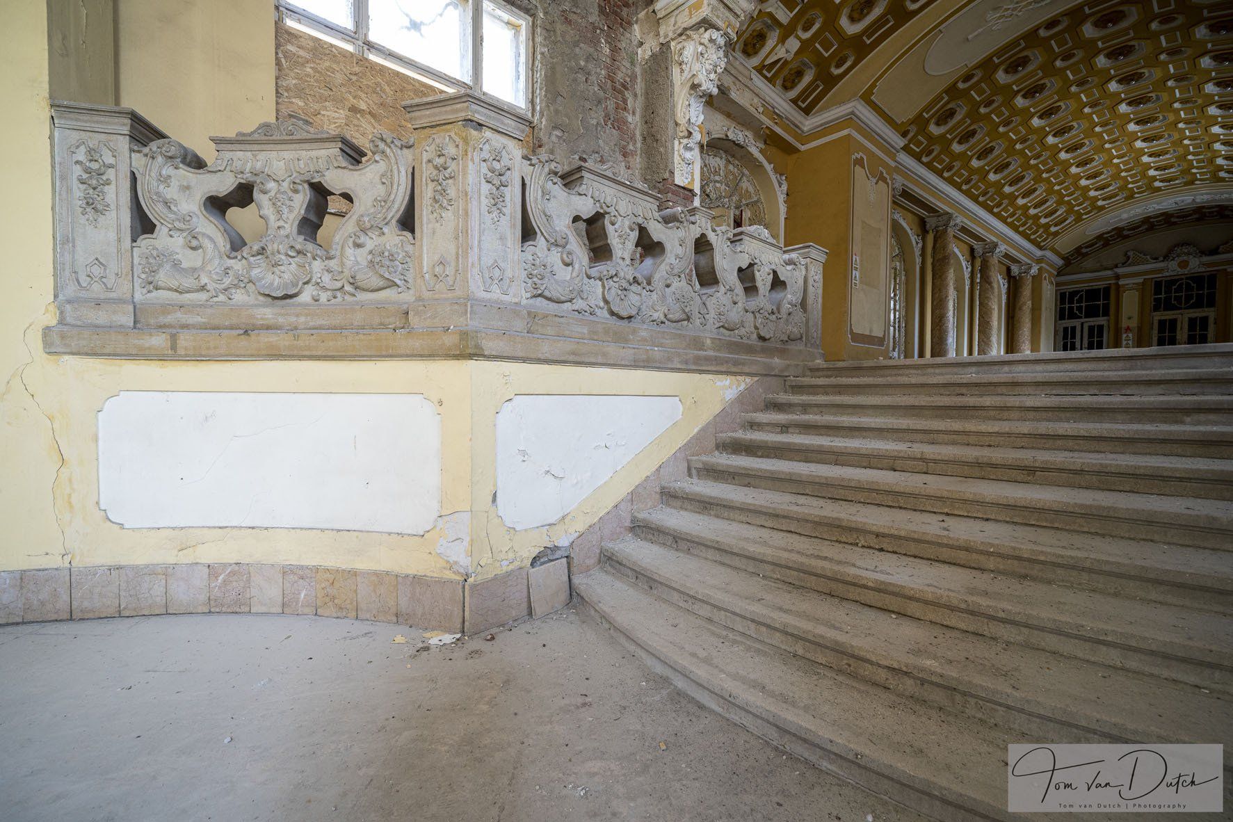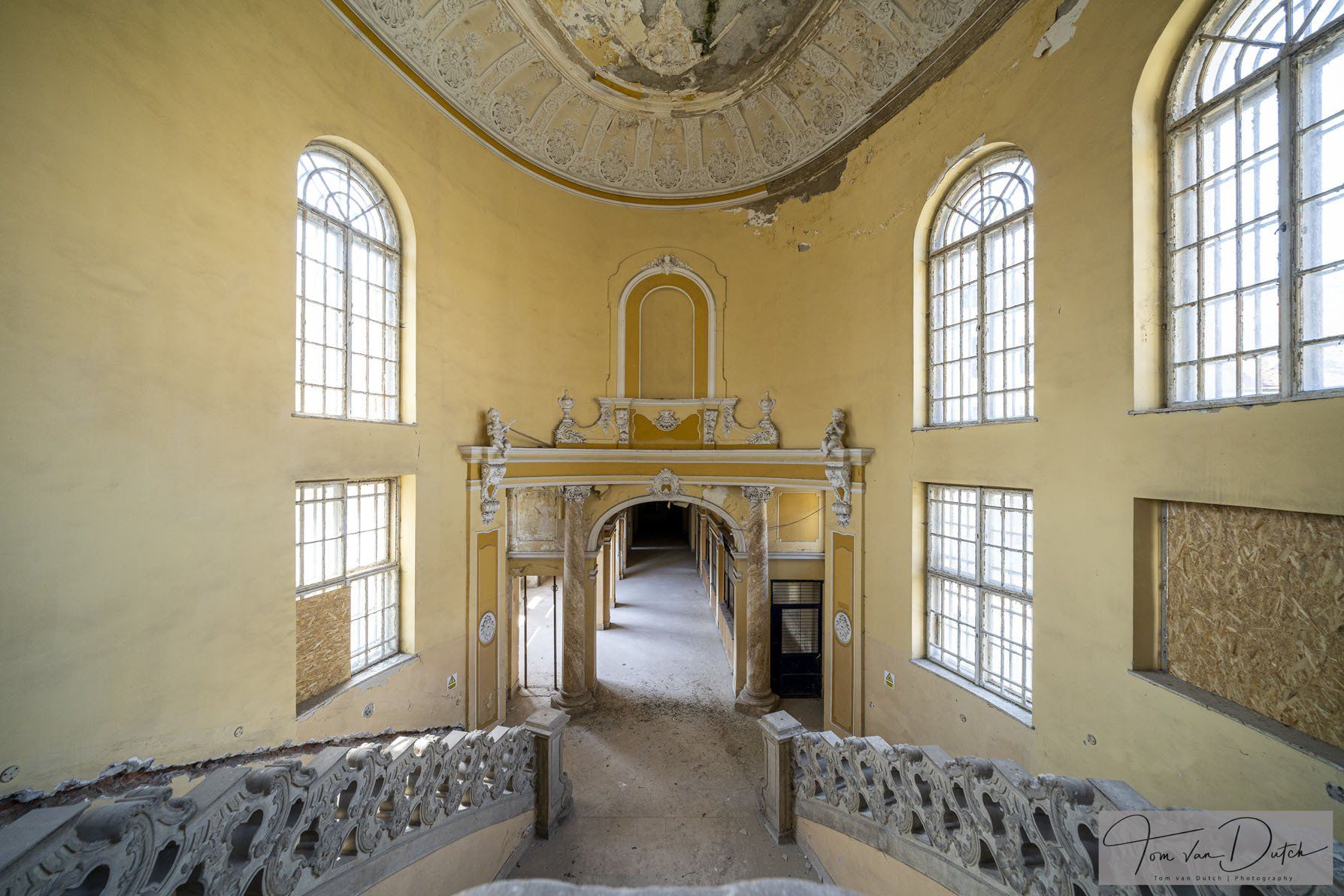 Insolvenzverwalter beschlagnahmten die Vermögenswerte des inzwischen aufgelösten Unternehmens, einschließlich dieses Gebäudes. Die Insolvenzverwalter stellten das Gebäude kostendeckend zum Verkauf. Die Gemeinde kaufte das Gebäude zurück und plant, das Gebäude wieder zu nutzen.