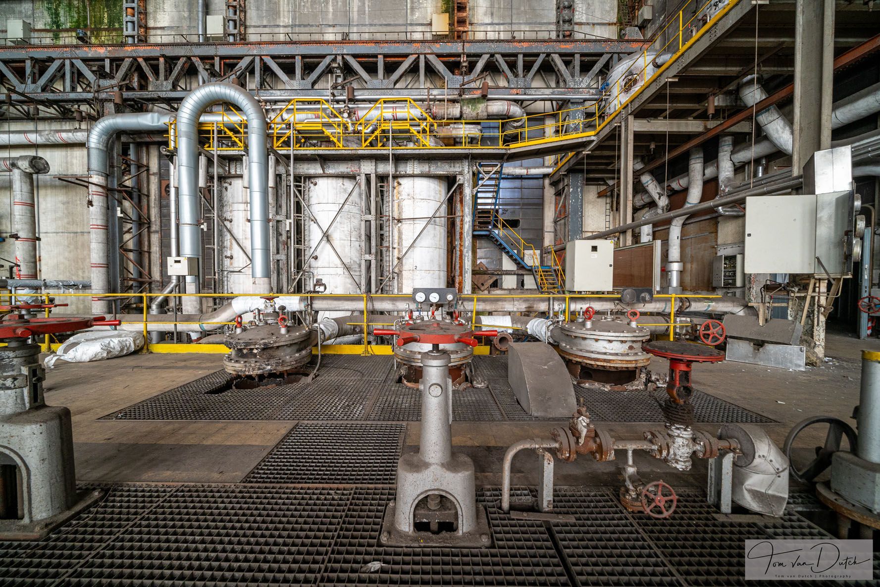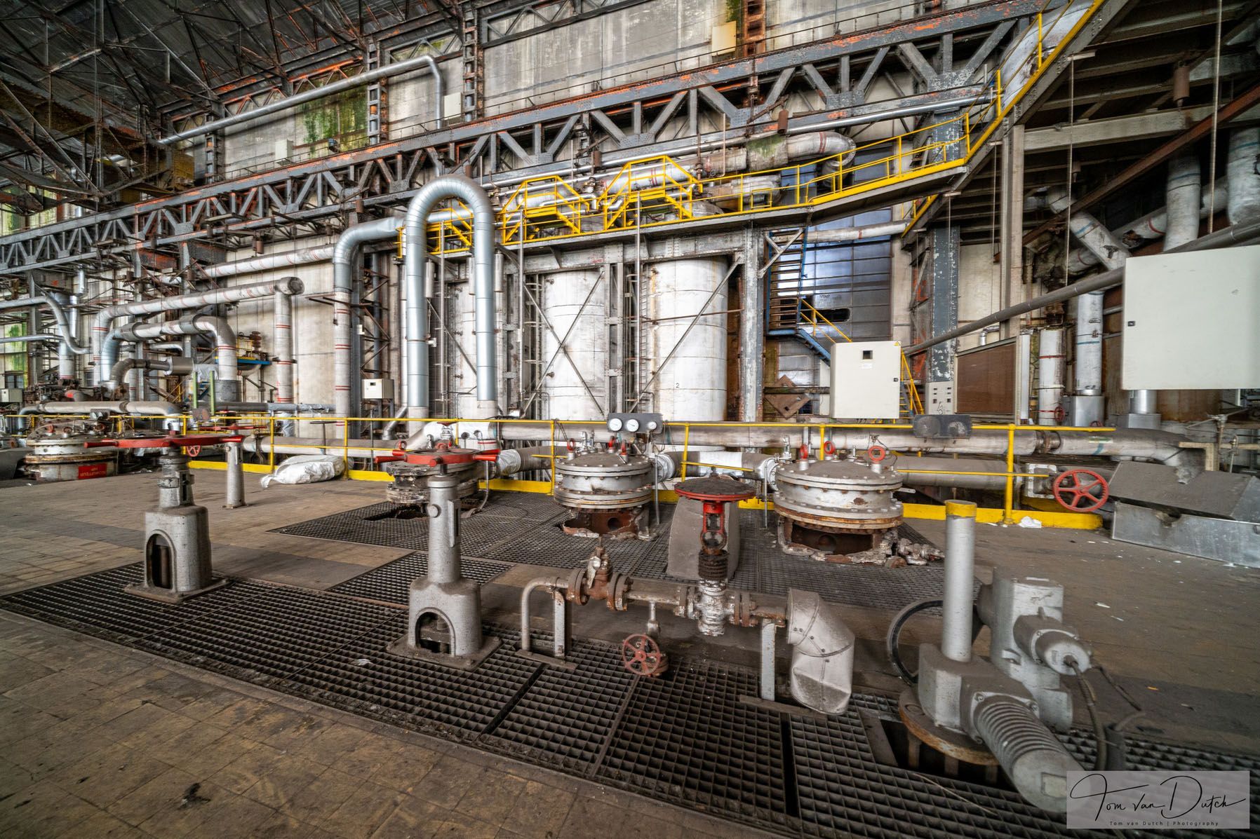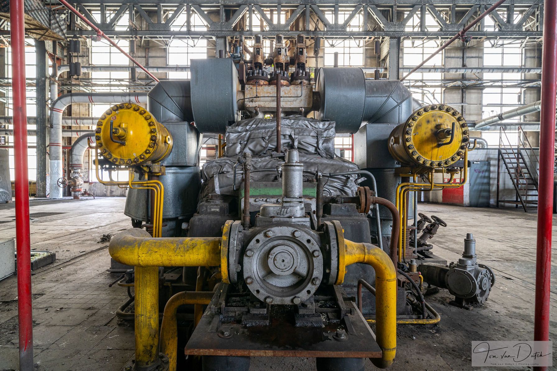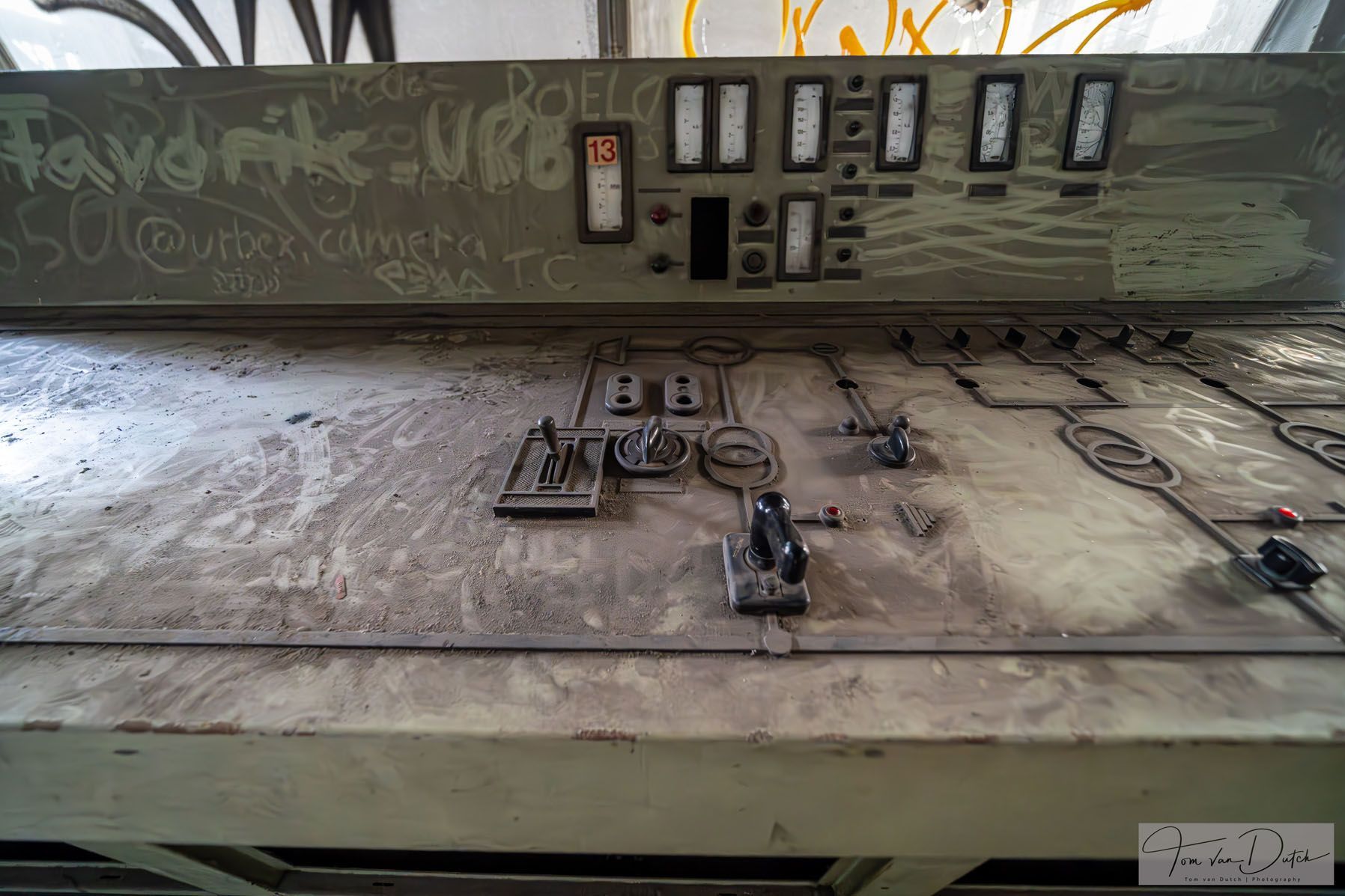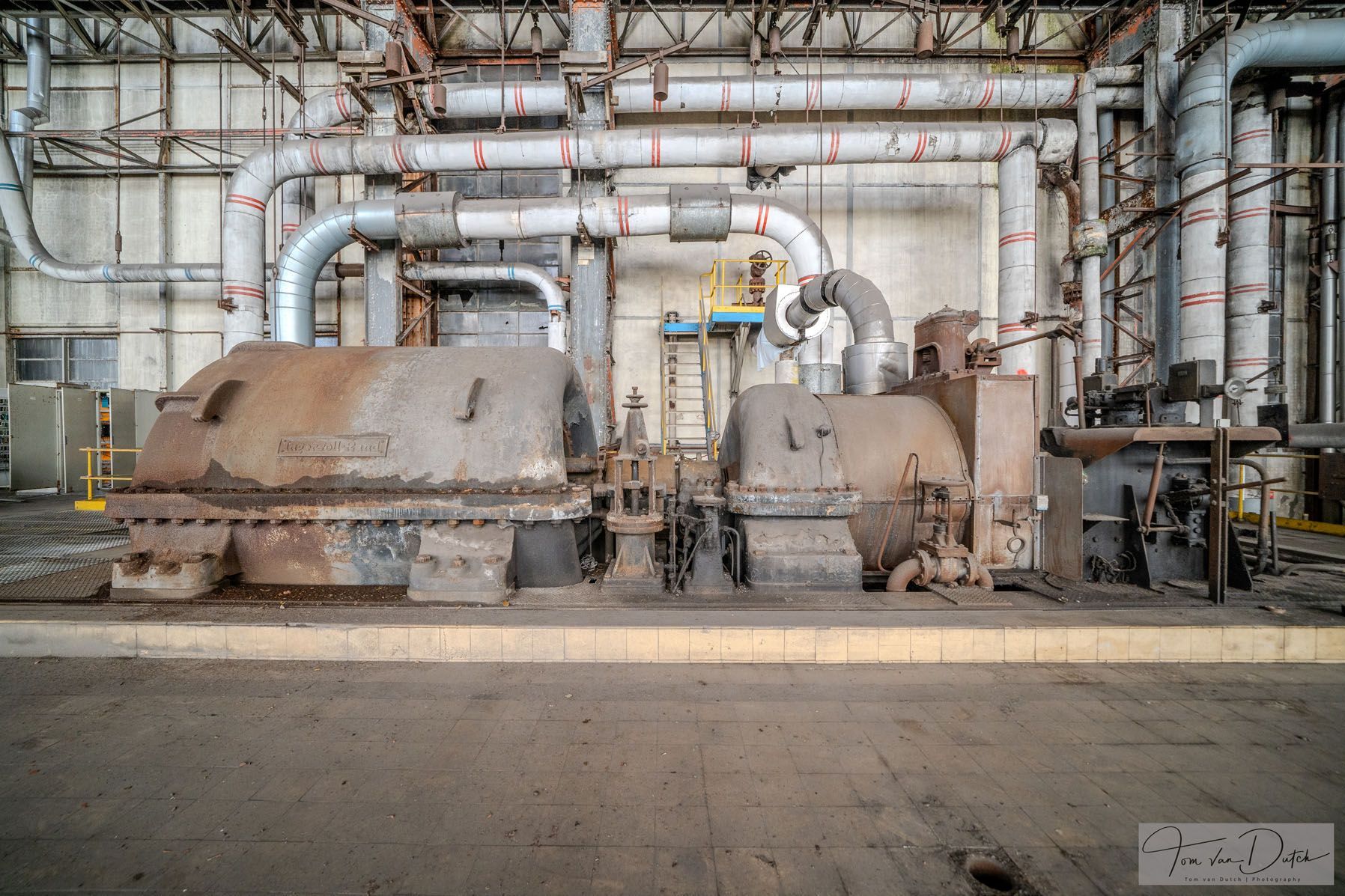 Das gesamte Gelände ist gut gesichert und ein Sicherheitsdienst patrouilliert auch regelmässig. Auf dem Gelände finden auch aktive Rückbaumaßnahmen stand und es stehen einige Baumaschinen dort. Das Kraftwerk ist eigentlich komplett zu. Allerdings hatte ich Glück und habe ein Schlupfloch gefunden. Ohne ordentliche Beleuchtung braucht man dort auch nicht hinein gehen, da es auf dieser Ebene stockdunkel ist. Da es sehr verwinkelt ist, hat es einige Zeit gedauert, bis ich im Kontrollraum stand. Die Turbinenhalle und der Kontrollraum sind nahezu frei von Vandalismus und das seit fast 16 Jahren. Daran kann man auch erkennen, was da an Kontrollaufwand betrieben wird.