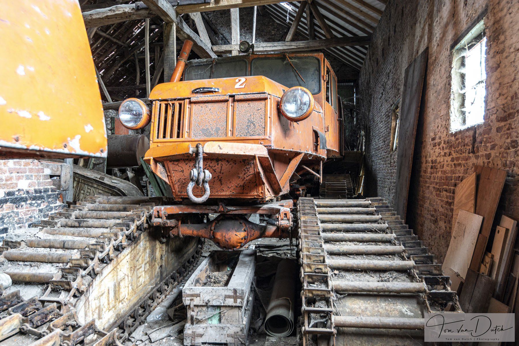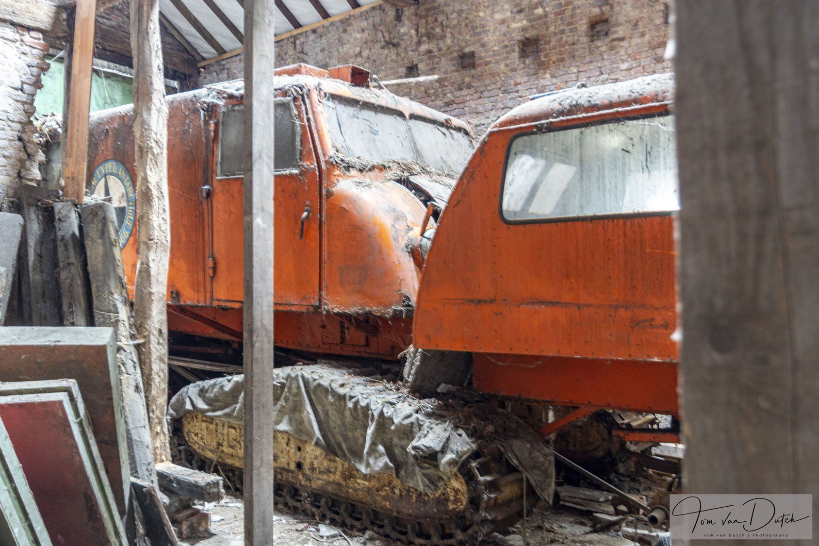 Die Schneemobile sind Tucker Sno-Cats die in den USA hergestellt wurden. Sie haben 4 unabhängig voneinander montierte Kettensätze, was sie von anderen Schneemobilen unterscheidet. Damit sie im Schnee besser zu sehen sind, wurden sie in orange lackiert. Heute stehen 3 dieser Schneemobile in einer Scheune in Belgien. Die Sno-Cats Typ 743S werden noch heute in Arktis und Antarktis eingesetzt.