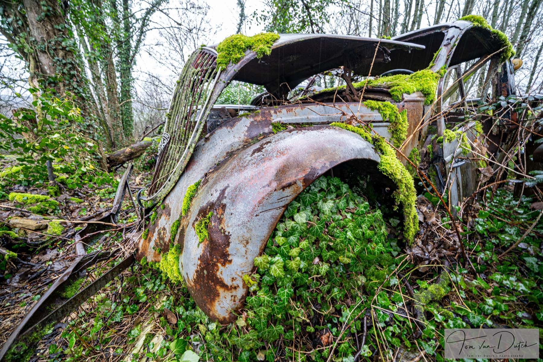 Sobald man einen Weg durch die dichten Hecken und Brennnesseln gefunden hatte, traute man seinen Augen kaum, auf was für ein Sammelsurium an Autoklassikern, man hier gestoßen ist. Auf diesem weitläufigen Grundstück im Hinterhof verteilt, finden sich mehrere diverse alte Mercedes, einige Peugeot (unter anderen ein Peugeot 202 der zwischen 1938 und 1946 so gebaut wurde), Citroën