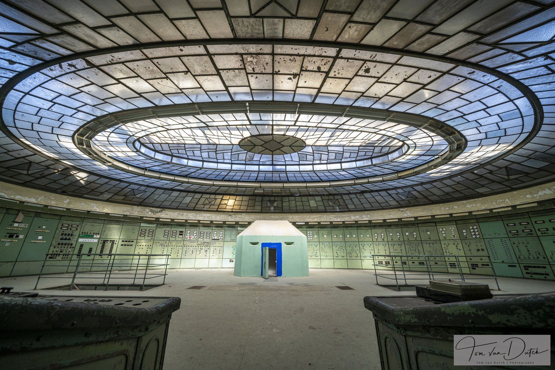 Wenn man ein paar Stufen hinaufgehen, vorbei an dem winzigen Ein-Mann-Bunker, der in die Wand eingebaut ist, gelangen man in den Kontrollraum. Antike Zifferblätter sind gegen militärgrüne Metallpaneele gesetzt, und eine Glasdecke im Art-Deco-Stil lässt Sonnenlichtstrahlen die staubigen Knöpfe, Anzeigen und Schalter beleuchten.