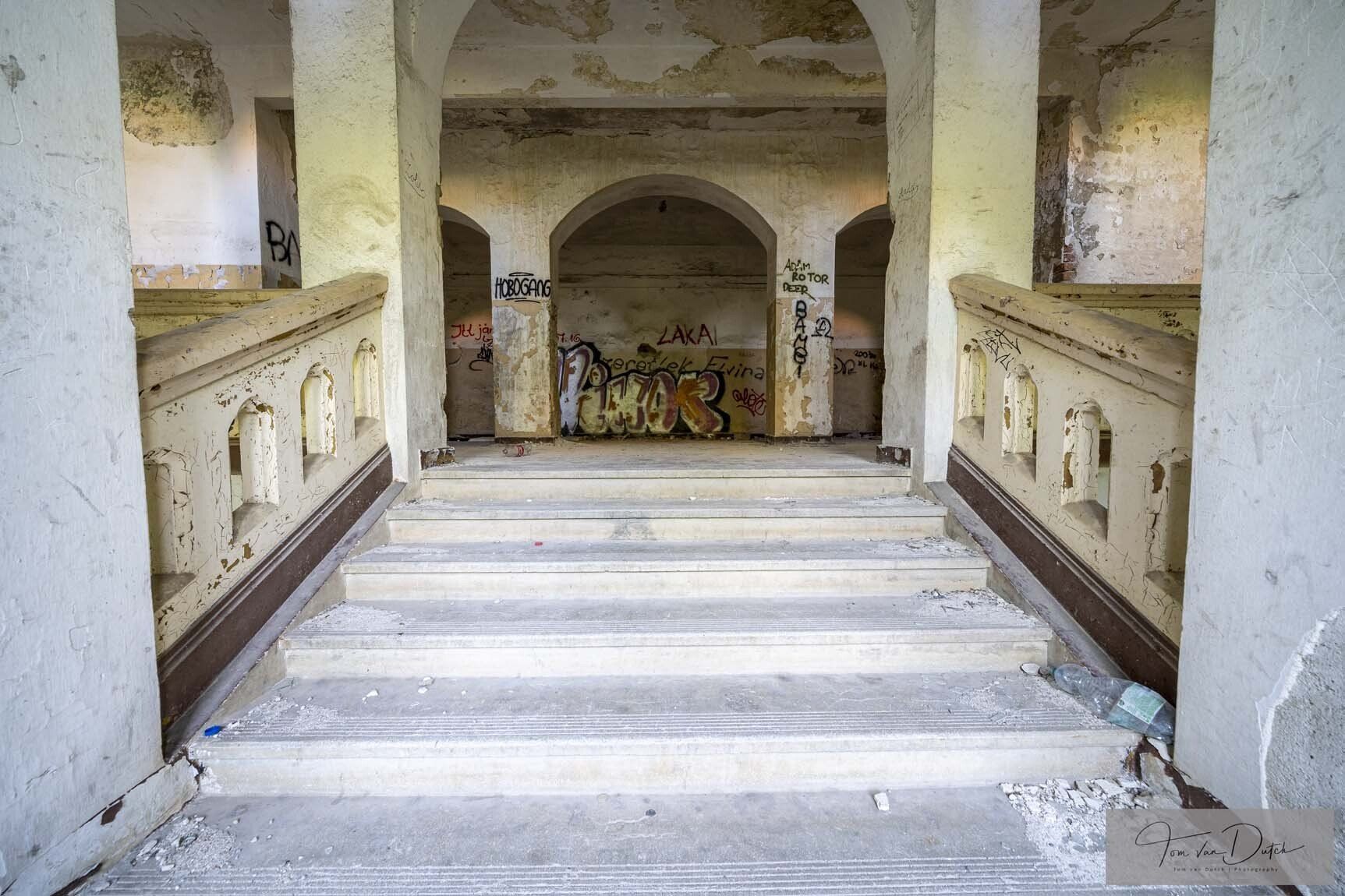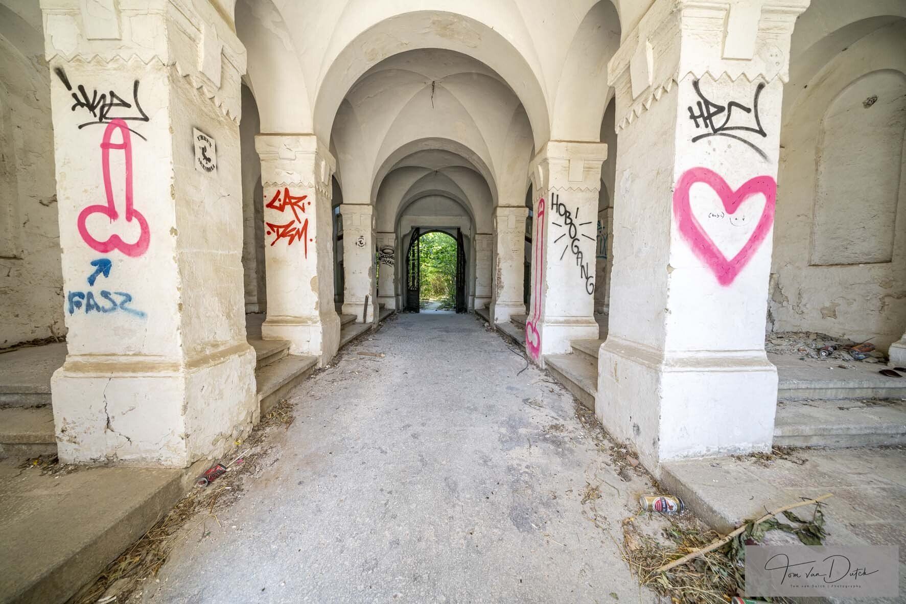 Den zentralen Zugang zur Kaserne bildet ein 101 Meter langes Empfangsgebäude, das mit einem von zwei kleinen Ecktürmen zusammengehaltenen Dachstuhl geschmückt ist, der in Form einer Stufenpyramide aufragt. Viele der Gebäude wurden leider, im Laufe der Zeit abgerissen. Einige wenige konnten erhalten werden und wurden einer Nachnutzung zugeführt. Am markantesten ist jedoch die Ruine des 6.000 qm großen Kommandogebäudes mit seinem 50 Meter hohem Turm, dass aussieht wie ein Schloß.