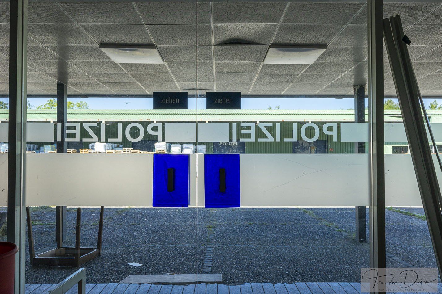 Hier befindet sich eine große Glastür, dessen Türaufschrift so gar nicht zu diesem Ort passt.