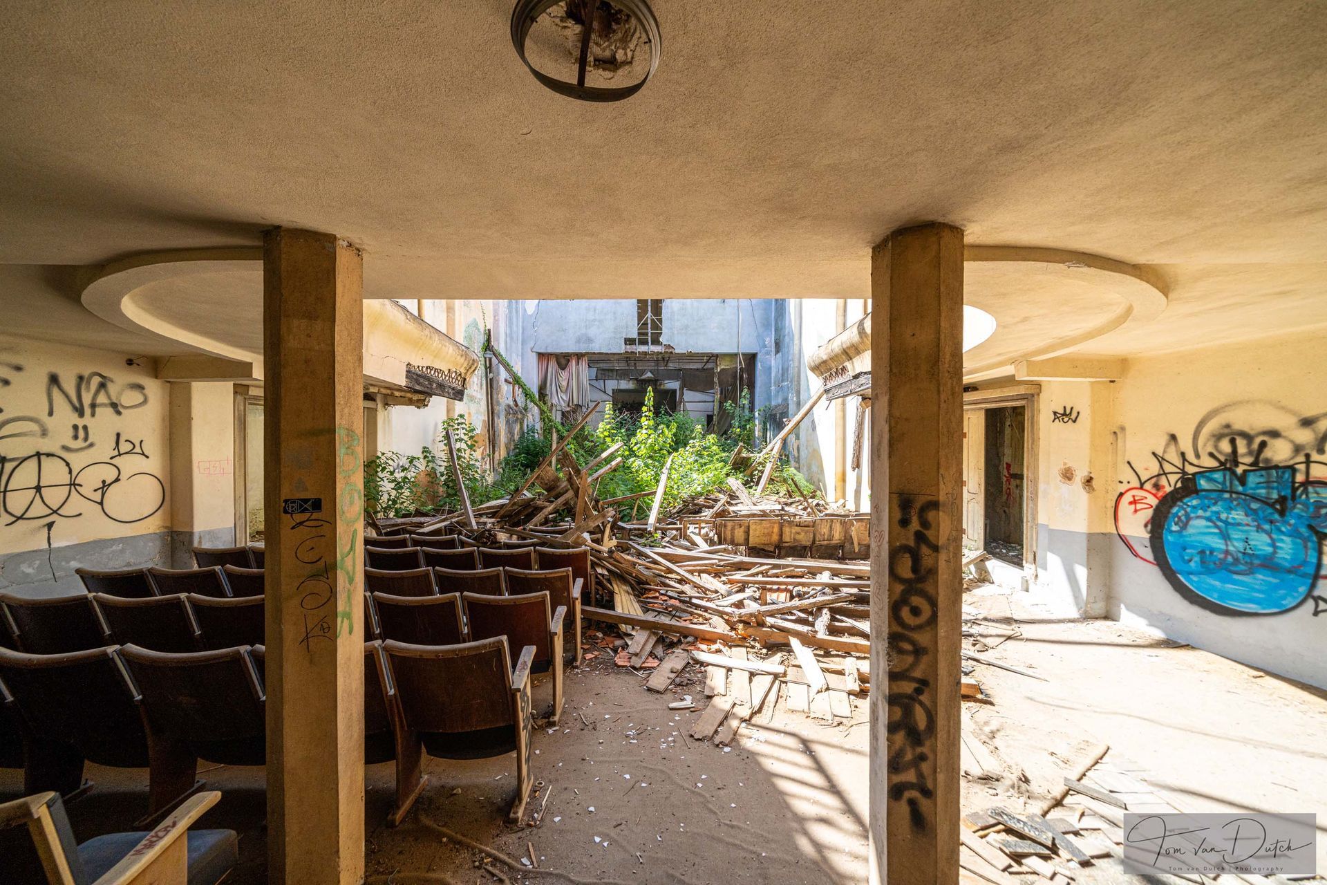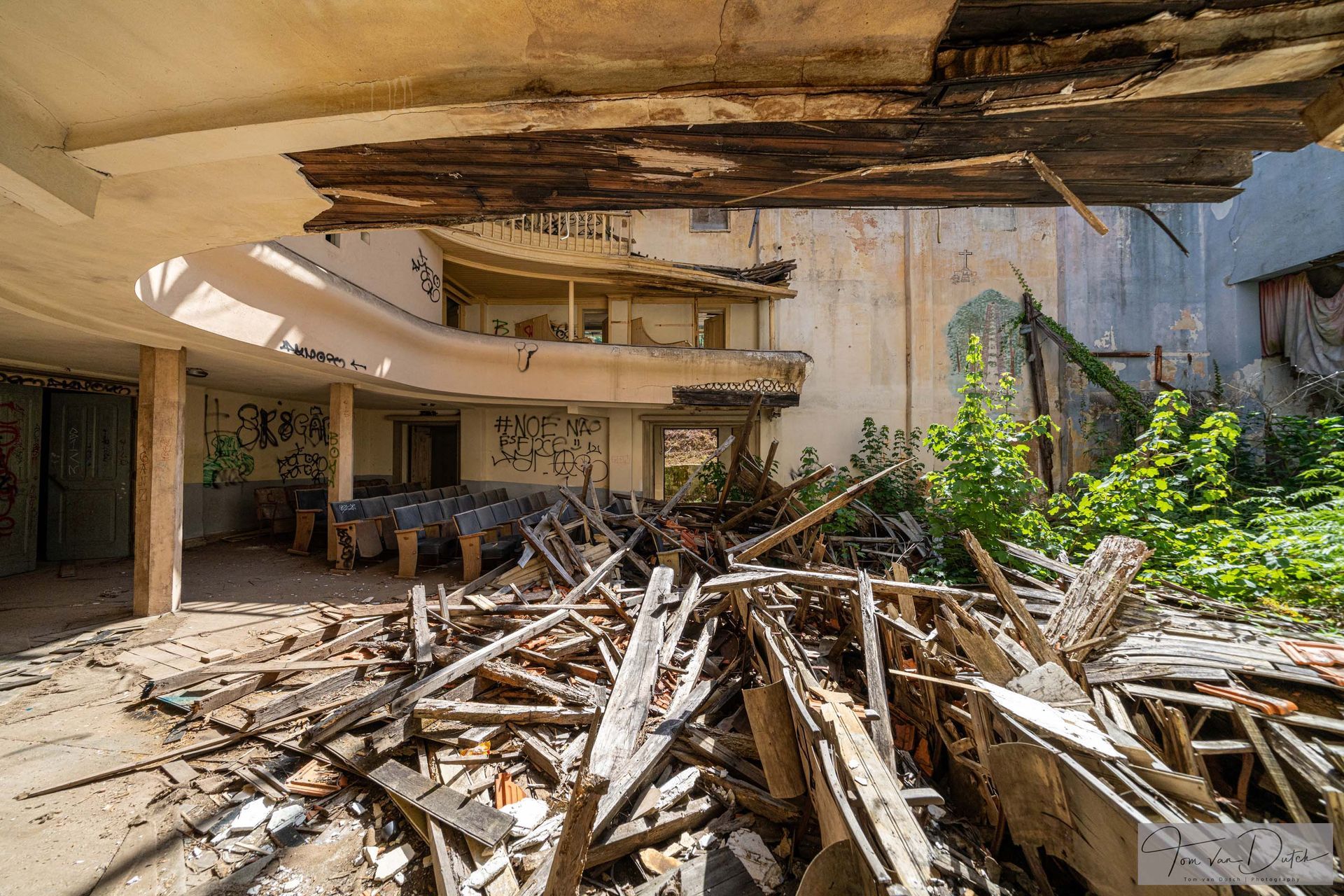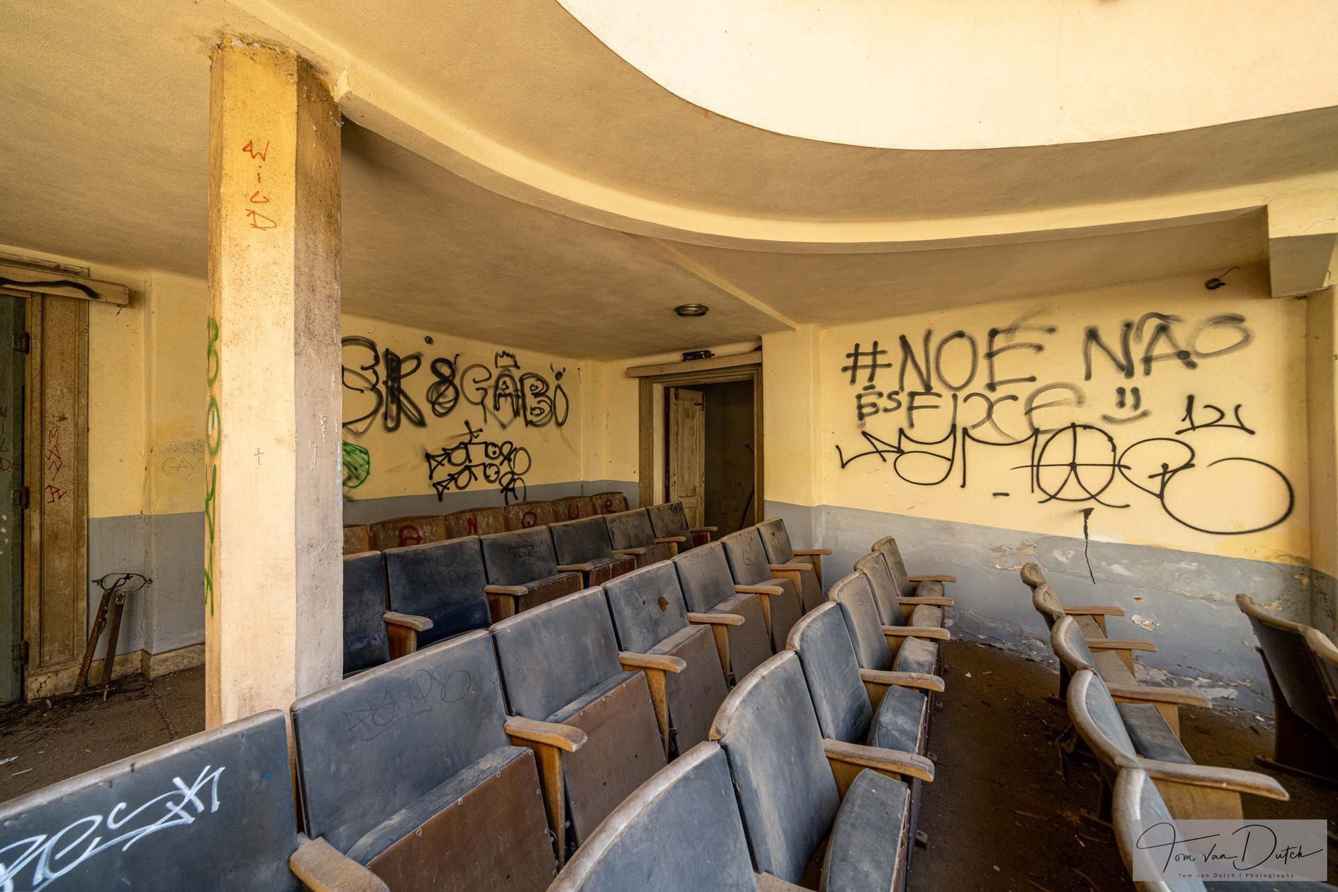 Das Theater war seit den 1930er Jahren eines der wichtigsten Zentren des Ortes. Seit mehr als zwei Jahrzehnten ist es jedoch geschlossen und verlassen. Das Theater hatte eine Kapazität von 364 Plätzen. Ein wunderschöner Ort um zu fotografieren. Der Besuch hat sich gelohnt. Es war nicht nur für Theateraufführungen konzipiert, sondern wie viele andere Theater bin Portugal auch, ebenfalls ein Kino. Somit war es auf verschiedene Arten nutzbar.