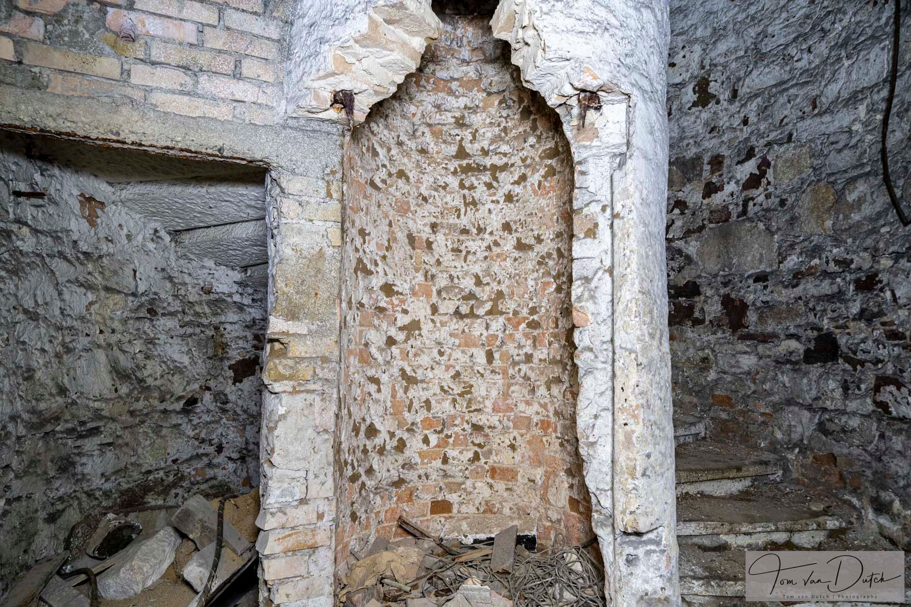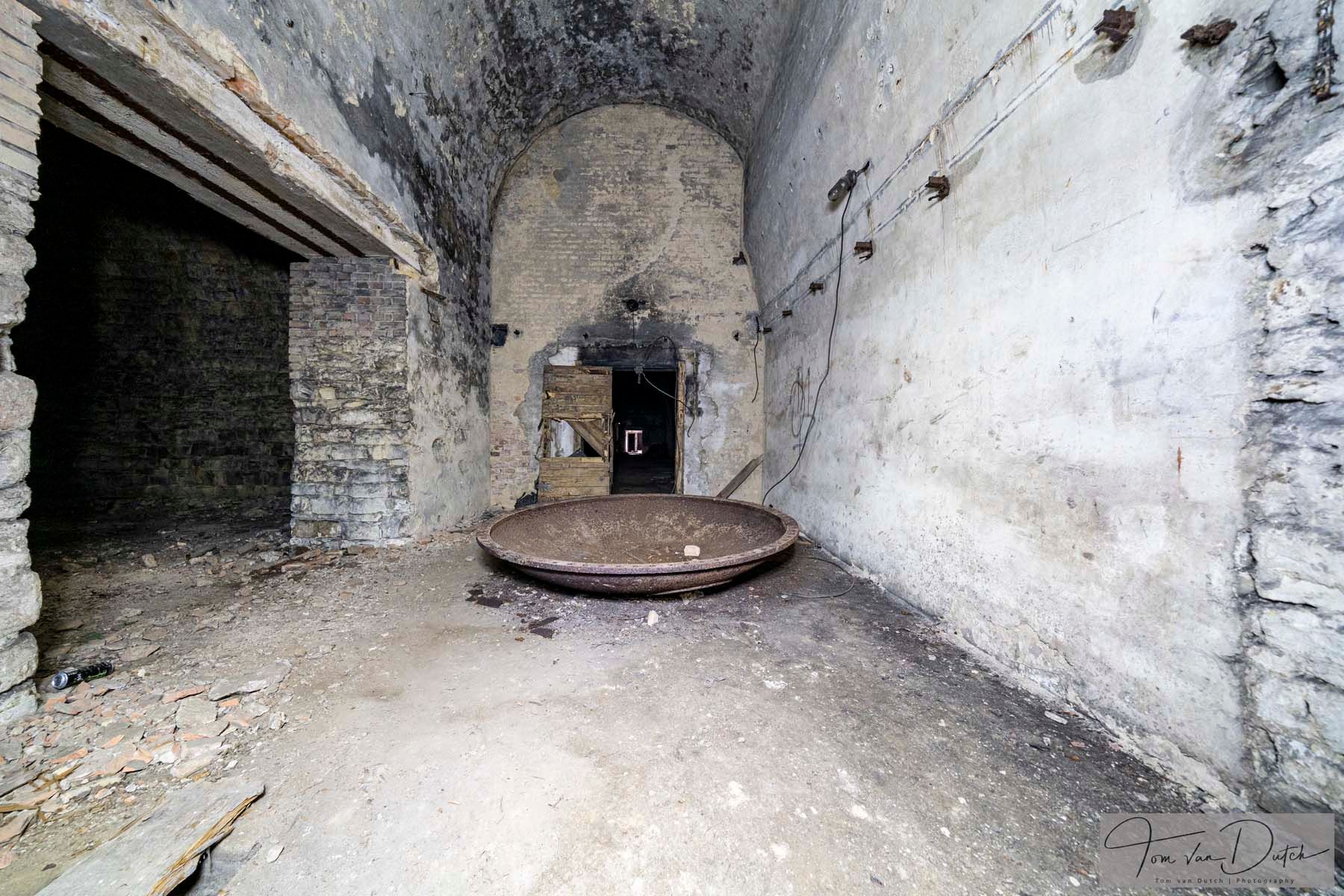 Die Produktionsebenen verliefen über drei Etagen und waren mit je zwei Lastenaufzügen und Treppenhäusern versehen. Eines davon als herrliche Wendeltreppe noch aus den Zeiten der Anfänge des Braubetriebes. Einige Kellerbereiche sind mit einem schwer entzündbaren korkähnlichen Material isoliert. Das lässt darauf schließen das sich hier die Lagerräume für Leime, Öle, Farben, Harze und die Hölzer für die Propellerfertigung befanden. Auch die in diesem Bereich durch Mauern getrennten Gewölbe lassen auf die Lager schließen. Die Produktionshallen und Testkammern sind mit feuerabweisendem Kalkschicht verputzt. Einige noch erhaltene Luftschächte unter den Gewölbebögen sind aus Brettern zusammengenagelt. Der Boden des gesamten Rüstungsbetriebes ist komplett ausbetoniert, Anzeichen für eine Gruben- bzw. Transportbahn auf Gleisen sind nicht zu erkennen. Auf Grund der eben verlaufenden Anlage und des perfekt eingebrachten Betonbodens war allerdings der Transport von der Verladerampe vor der U-Verlagerung mittels Plattenwagen oder ähnlichem in den Untertagebetrieb kein Problem. Original Elektroinstallationen mit den alten Kabelsträngen verlaufen zu einem Großteil noch im Gesamtkomplex des Propellerbetriebes.