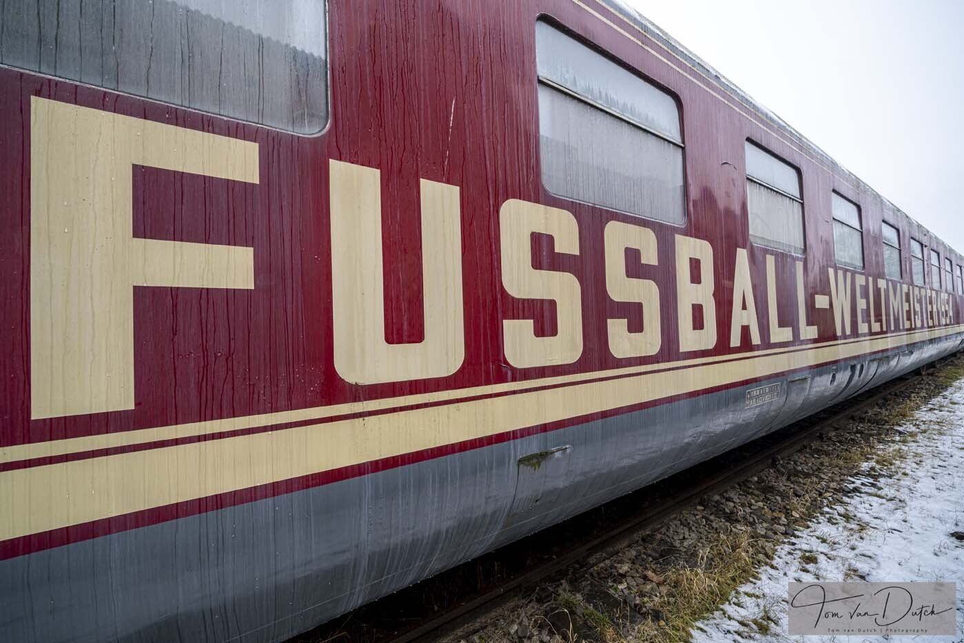 Es handelt sich hier nicht um das Original. Fritz Walter, Helmut Rahn und Toni Tureck haben diesen Zug nie betreten. Sönke Wortmann ließ ihn 2002, für die Dreharbeiten zu „Das Wunder von Bern“ entsprechend herrichten. Eine Restaurierung würde heute 3-4 Mio. EUR kosten.