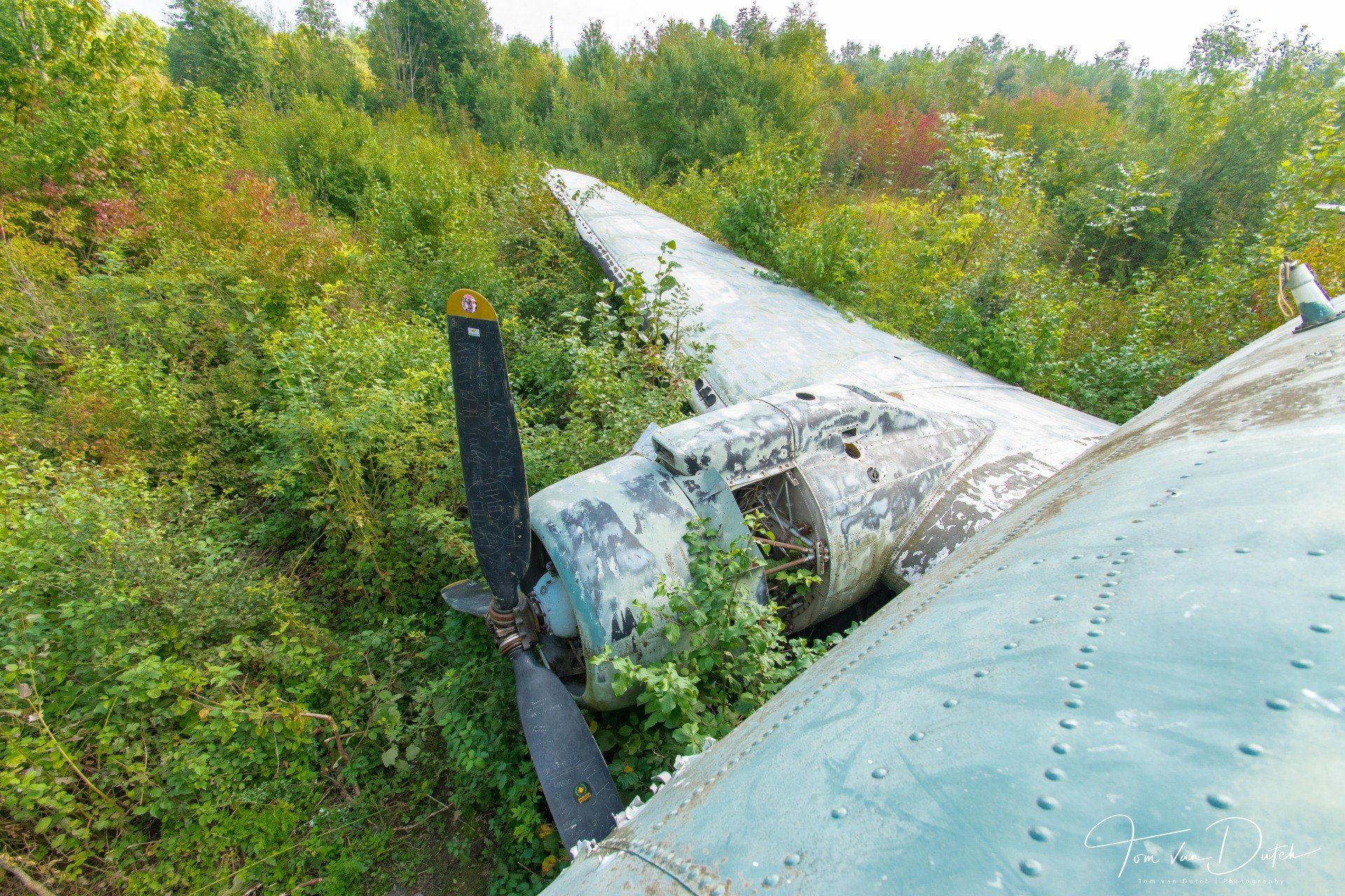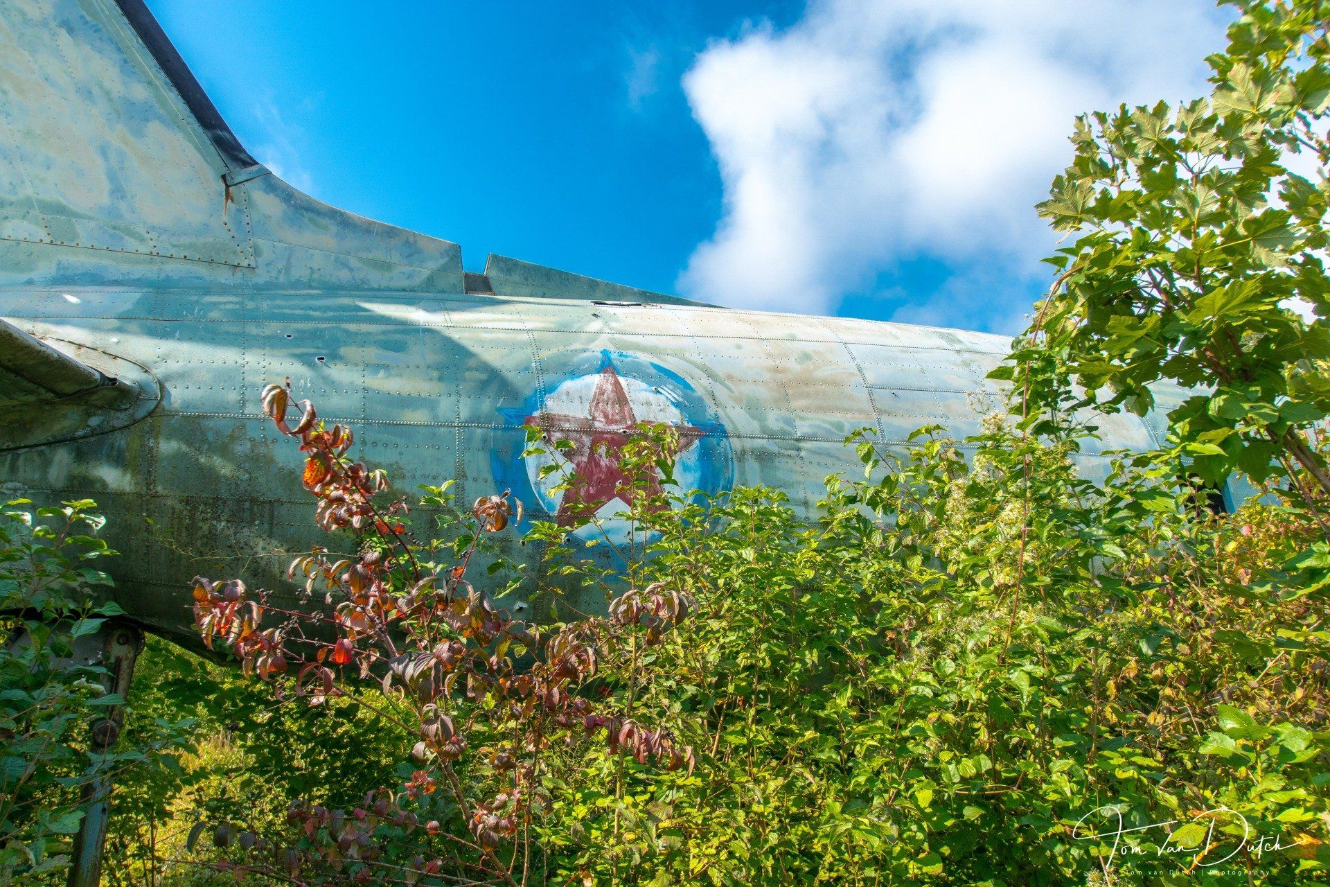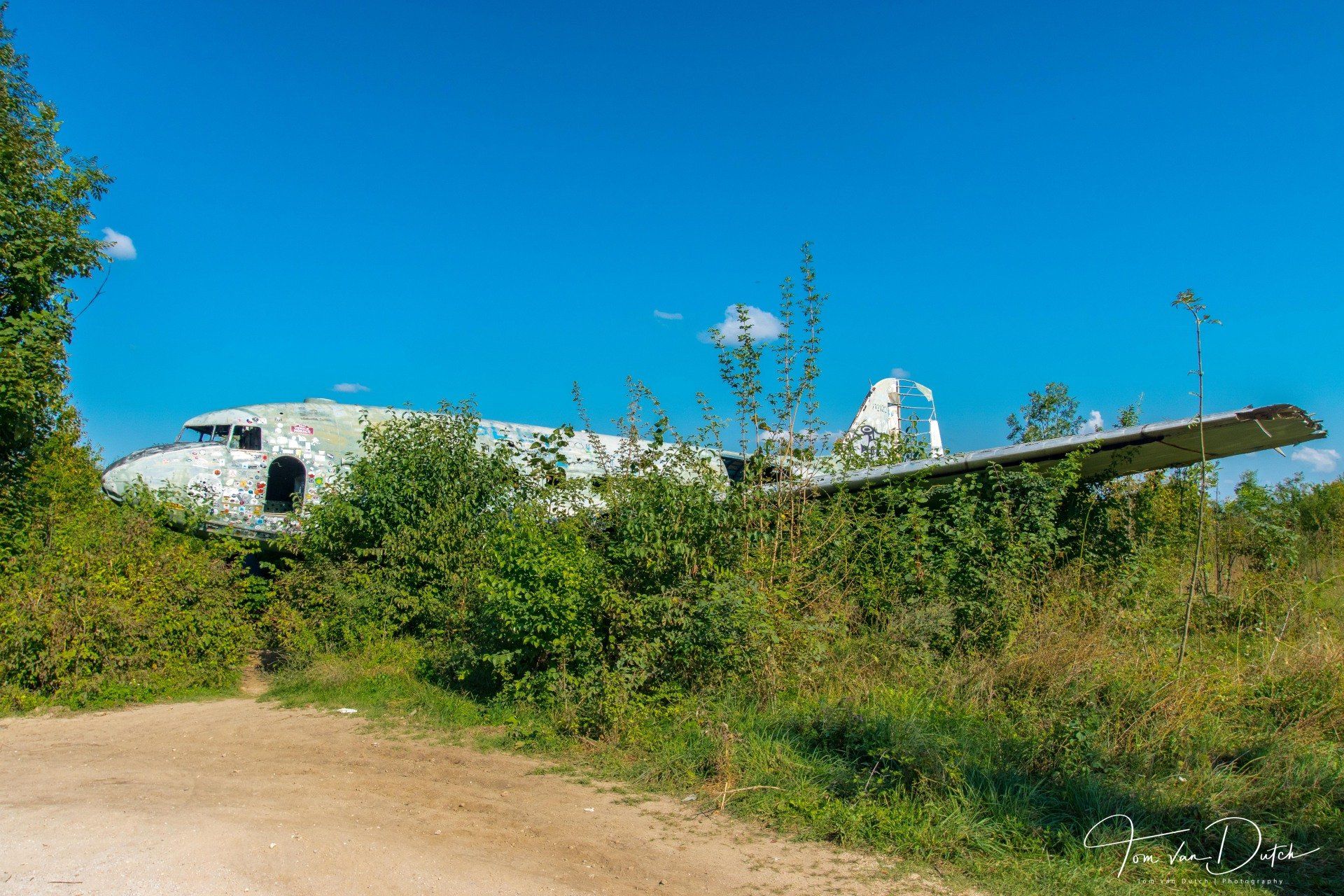 Diese DC3 steht vor einer ehemaligen Kasernenanlage der Jugoslawischen Volksarmee.